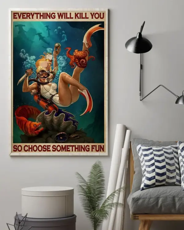 Girl Diving Everything Will Kill You So Choose Something Fun Poster