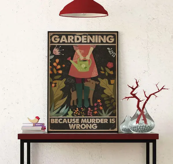 Girl Gardening Because Murder Is Wrong Poster Garden Poster Botanical Canvas Print Gardening Lover Gift Vintage Poster Floral Art Print