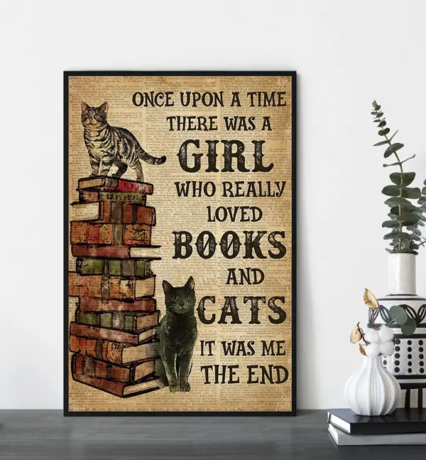 Girl Love Cats And Books Poster Poster Love Reading Poster Book Lovers Poster Book And Cat Best Gifts Ever Home Decor Wall Art 1407 Framed Matte Canvas