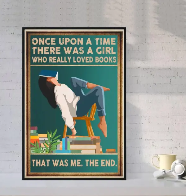 Girl Once Upon A Time There Was A Girl Who Really Loved Book There Was A Girl Who Really Loved Books Book Lovers Poster Reading Girl