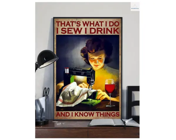 Girl Sewing With Wine That What I Do I Sew I Drink And I Know Things Poster Decor Wall Poster No Frame Full