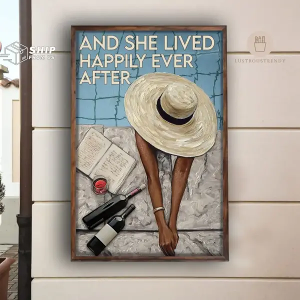 Girl Swimming Pool And Wine Poster And She Lived Happily Ever After Poster Wall Art Print Home Living Decor Poster
