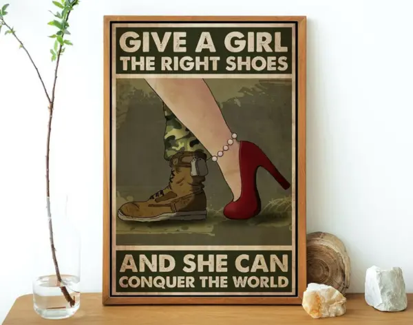 Give A Girl The Right Shoes She Can Conquer The World Feminist Poster Girl Power Red High Heels Feminism Vertical Poster No Framed