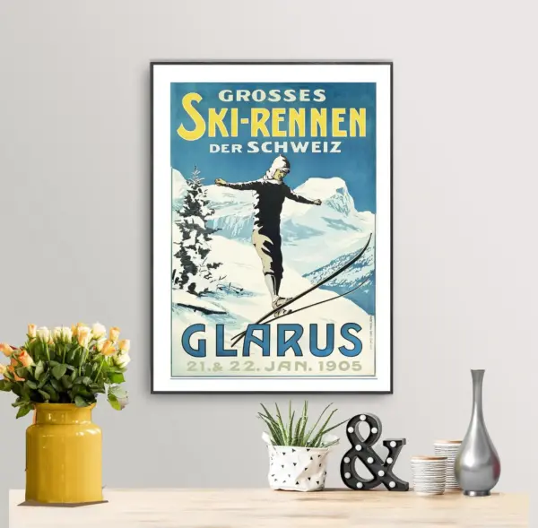 Glarus Grosses Ski Rennen Der Schweiz Vintage Travel Poster Poster Paper Sticker Or Canvas Print Gift Idea