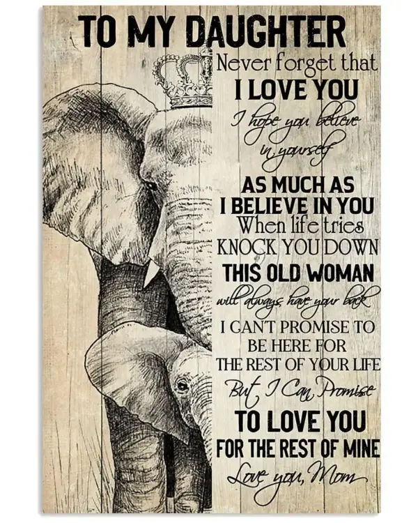 Gloss Poster Elephant To My Daughter Poster Gift For Mom Poster Home Decor Wall Gift Mother S Day Framed Matte Canvas