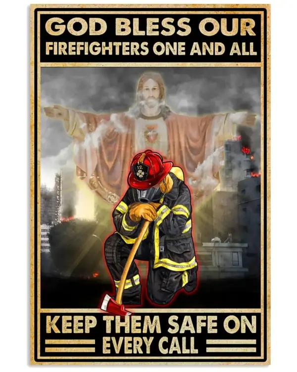God Bless Our Firefighters One All Keep Them Safe On Poster