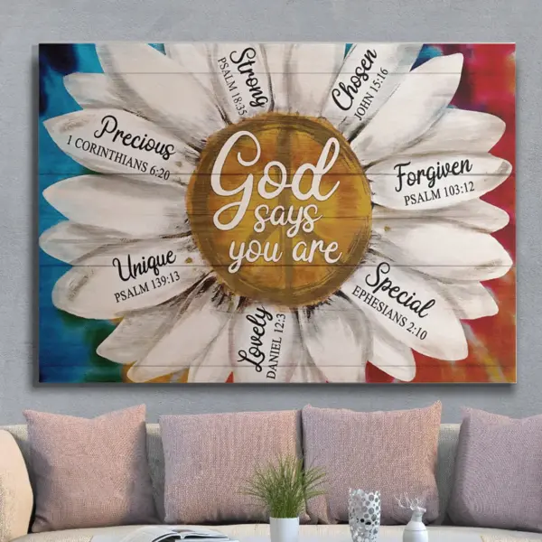 God Daisy Flower Canvas God Says You Are Canvas Strong Unique Special God Canvas Art Faith Print Home Decor Wall Art Jesus Wall Decor