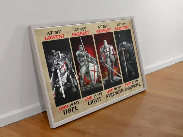 God Is My Hope My Light My Strength My Comforter Motivational Medieval Knight Poster Christian Art Print Templar Canvas For Home Decor