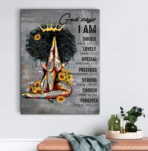 God Say I Am Unique Canvas Black Girl Canvas African American Girl Black Yoga Girl Canvas Yoga Home Decor