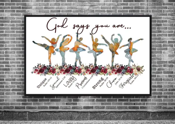 God Says You Are Unique Special Lovely Poster Ballet Poster Dancer Printable Love Ballet Print Dance Lover Gift Romantic Ballet Poster