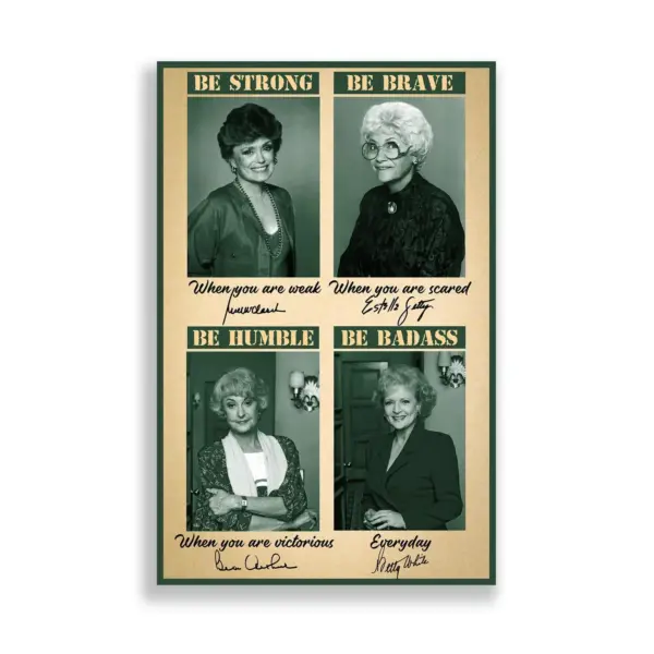 Golden Girls Poster Be Strong Be Brave Be Humble Be Badass Rose Blanche Dorothy Sophia Signatures 80S Movie Fans Wall Hanging Decor