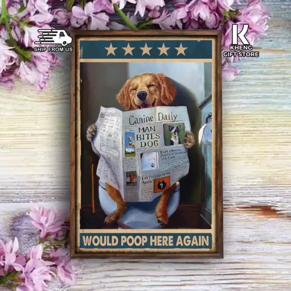 Golden Retriever Dog Lovers Would Poop Here Again Poster Home Living Restroom Toilet Decor Poster