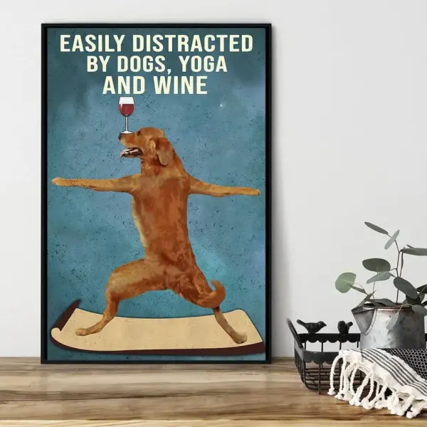 Golden Retriever Easily Distracted By Dogs Yoga And Wine Poster