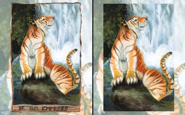 Golden Tiger Print Waterfall Wall Art Empress Tarot Card Nature Lover Gift Big Cat Decor Animal Illustration Animism Tarot Deck