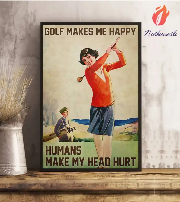 Golf Poster Golf Makes Me Happy Wall Art Home Decor Poster Print
