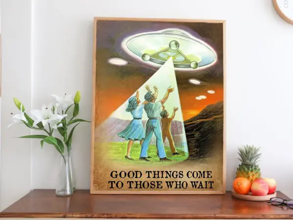 Good Things Come To Those Who Wait Poster Alien Wall Art Alien Poster Ufo Wall Decor Ufo Alien Wall Art Space Wall Art
