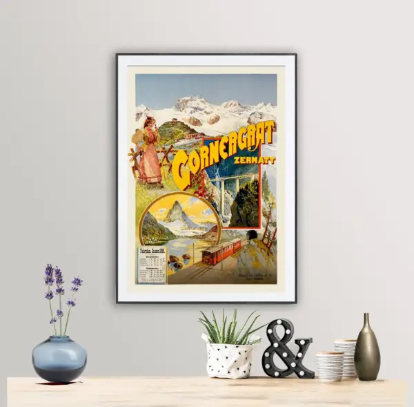 Gornergrat Zermatt Schweiz Vintage Travel Poster Poster Paper Sticker Or Canvas Print Gift Idea