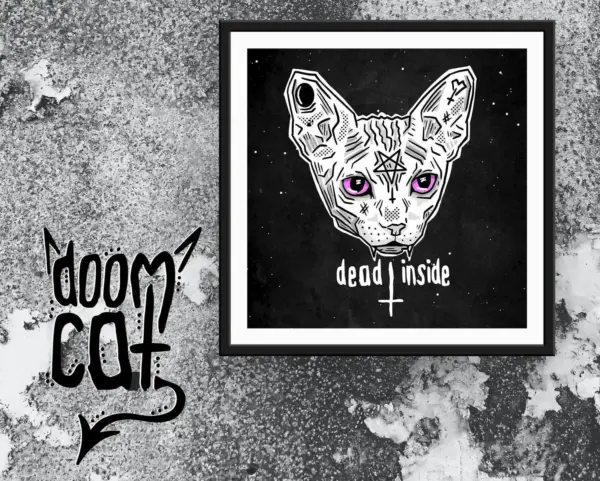 Unique gothic-inspired Sphynx cat art print perfect for witchy home decor. Black textured poster that captures the essence of feline mystique and dark aesthetic.