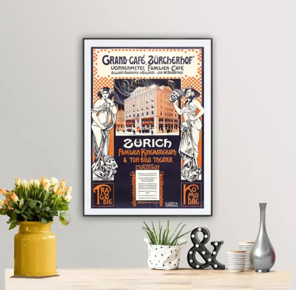 Grand Cafe Zurcherhof Zurich Familien Cafe Suisse Vintage Travel Poster Poster Paper Sticker Or Canvas Print Gift Idea
