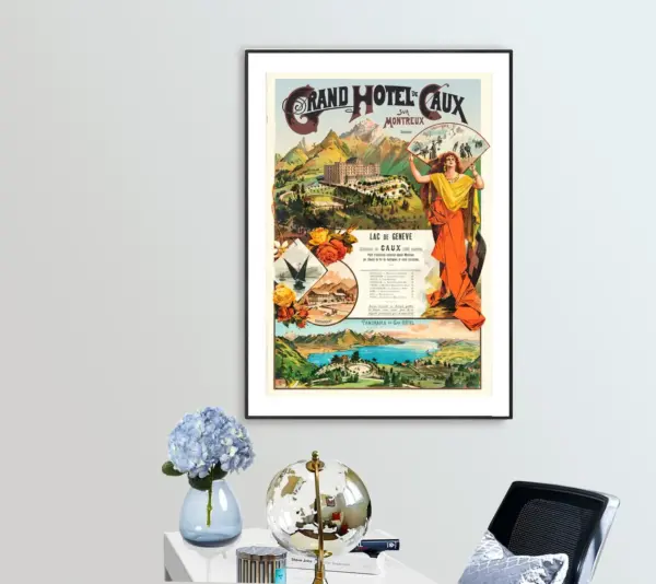 Grand Hotel Caux Sur Montreux Suisse Vintage Travel Poster Poster Paper Sticker Or Canvas Print Gift Idea