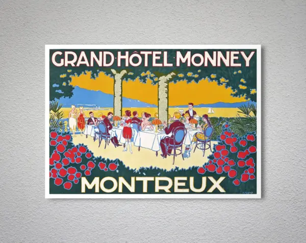 Grand Hotel Monney Montreux Switzerland Vintage Travel Poster Poster Print Sticker Or Canvas Print Gift Idea Christmas Gift