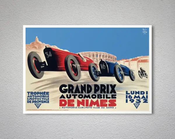 Grand Prix Automobile De Nimes 16 Mai 1932 Vintage Grand Prix Poster Poster Print Sticker Or Canvas Print Gift Idea Christmas Gift