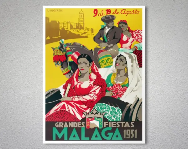 Grandes Fiestas Malaga Vintage Travel Poster Poster Paper Sticker Or Canvas Print Gift Idea