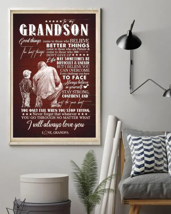 Grandpa To Grandson I Believe You Can Overcome Poster Vintage Poster Fishing Art Fishing Print Wall Art Grandpa To Grandson Poster