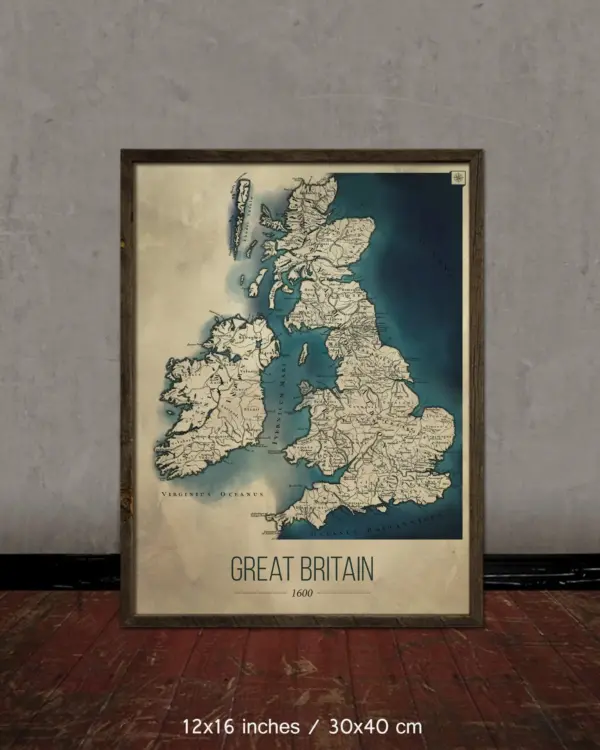 Great Britain Map Old Vintage Poster