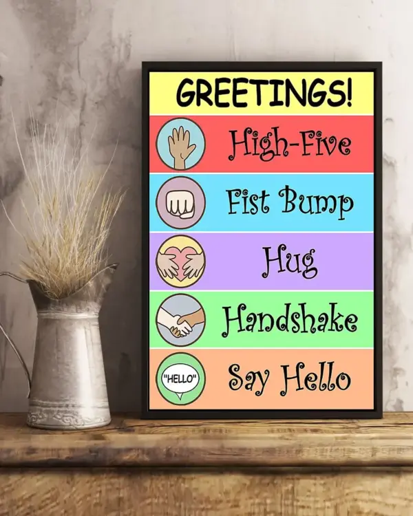 Greetings Teacher Classroom Poster High Five First Bump Hug Handshake Say Hello Room Home Decor Wall Art Gifts Idea Mostsuit