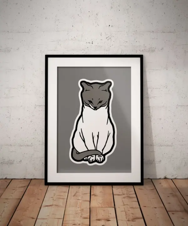 Grey And White Cat Print Grey And White Cat Poster Cat Lover Gift Home Decor