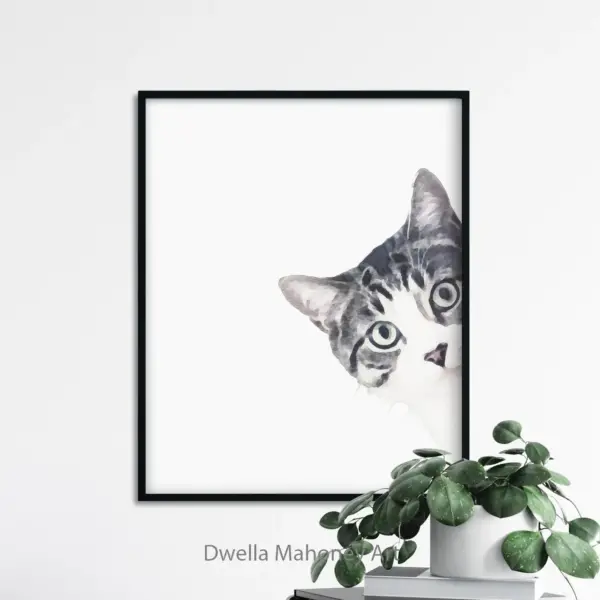 Grey Cat Art Watercolor Cat Painting Cat Art Print Nursery And Girls Room Decor