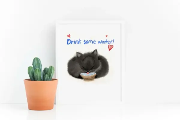 Grey Cat Reminds You To Drink Some Water Art Print Instant Art Printable Grey Cat Licking Water Quote Poster Wall Art