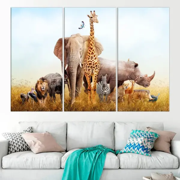 Group Of African Animals Large Canvas Print African Safari Animals Wall Decor Big Poster Framed Art Animal Modern Art Grasslands Home Decor