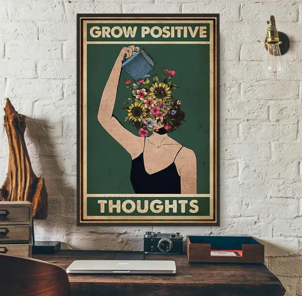Grow Positive Thoughts Girl Flowers Poster