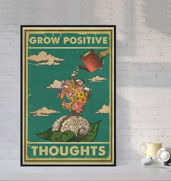 Grow Positive Thoughts Poster Mental Health Poster Mental Health Awareness Pot Head Girl Poster Gift For Meditators Meditation Poster