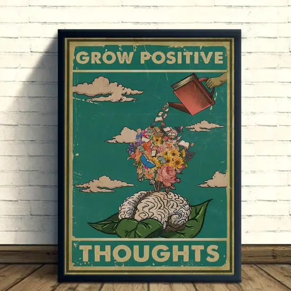 Grow Positive Thoughts Vintage Poster Flower Head Girl Poster Mental Health Poster Motivational Poster Emotions Poster Love Yourself