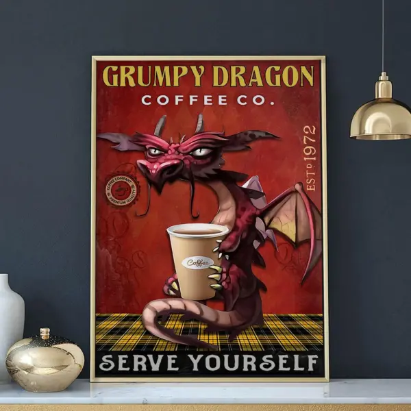 Grumpy Dragon Poster Poster Print Art Print Best Gift Ever Home Decor Poster Prints Prints Wall Art Grumpy Dragon Coffee Dragon