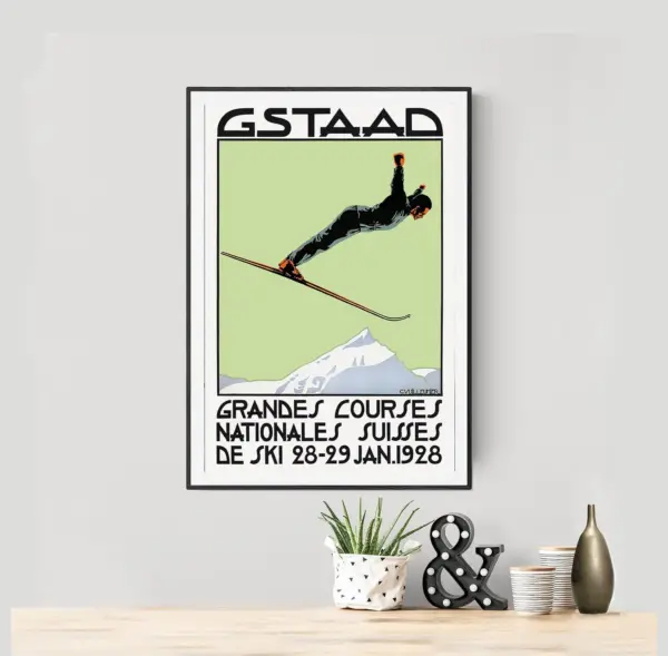 Gstaad Suisse Vintage Ski Poster Poster Paper Sticker Or Canvas Print Gift Idea