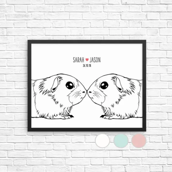 Guinea Pig Wall Art Custom Name Print Personalized Couple Wedding Decor Animal Sign Poster Newlywed Valentine Housewarming Gift