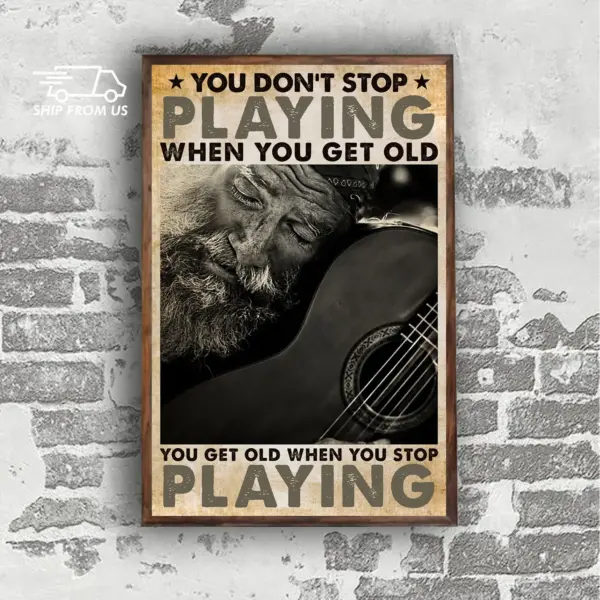 Guitarist & Old Man Playing Poster - Home Decor