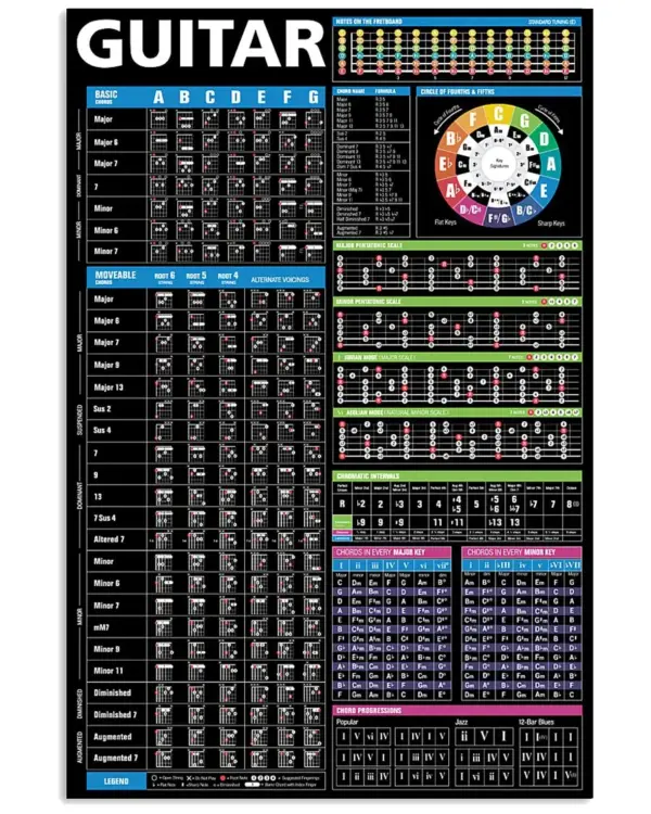 Guitar Notes On The Fretboard Standaro Tuning Poster