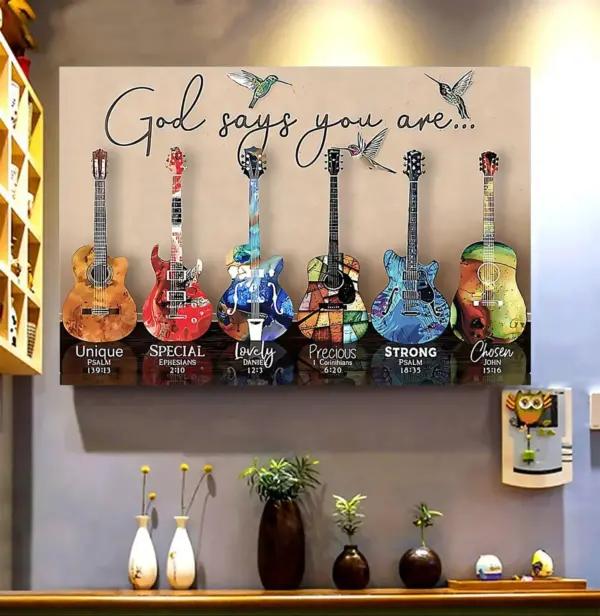 Guitars And Birds Print God Says You Are Poster Guitar Lovers Gift Love Playing Guitar Wall Art Lovely Birds Print Vintage Guitar Art