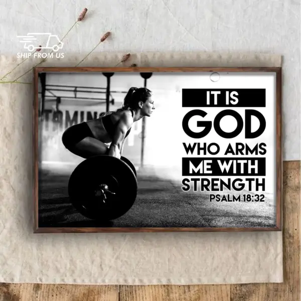 Gym Gymer Weightlifting Fitness Girl Poster It Is God Who Arms Me With Strength Poster Christian Gifts Living Decor Poster