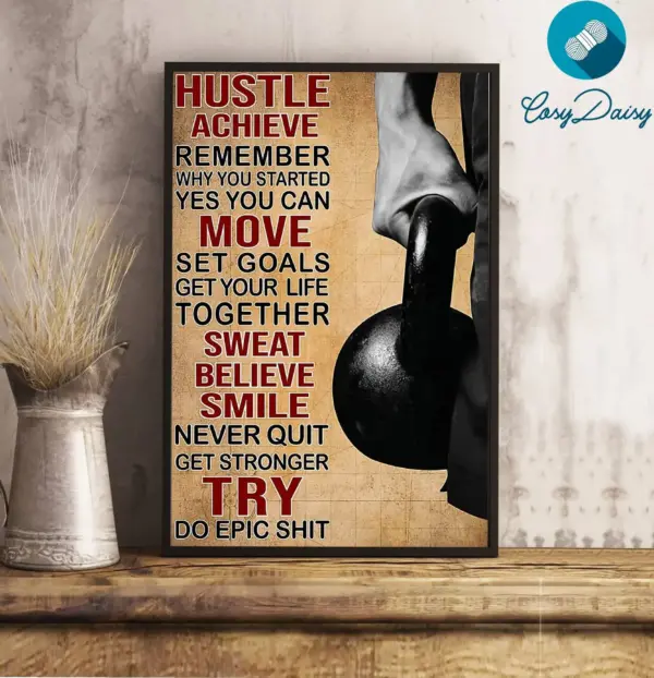 Gym Poster Fitness Hustle Achieve Fitness Decor Wall Art Home Decor Poster Print