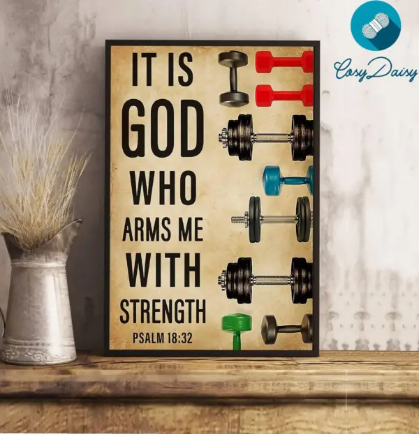 Gym Poster Fitness It Is God Who Arms Me With Strength Fitness Decor Wall Art Home Decor Poster Print