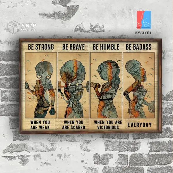 Gym Workout Fitness Weightlifting Lifting Afro Girl Poster Be Strong When You Are Weak Poster Home Living Decor Poster