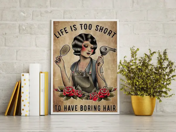 Hairdresser Poster Life Is Too Short To Have Boring Hair Poster Beauty Salon Salon Decor Hair Stylist Hair Stylist Quote New Salon Gift