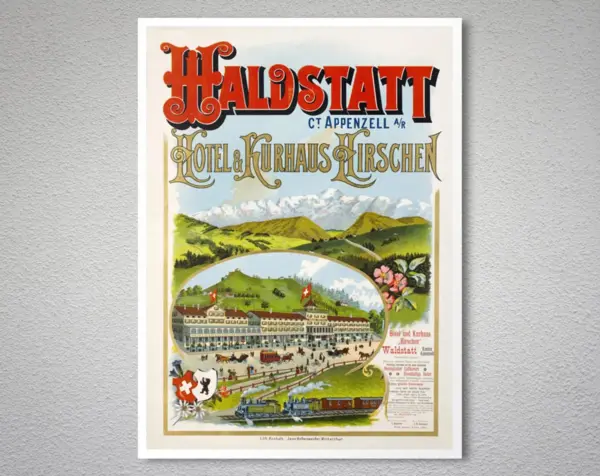 Haldstatt Appenzell Hotel Kurhaus Hirschen Vintage Travel Poster Poster Paper Sticker Or Canvas Print Gift Idea