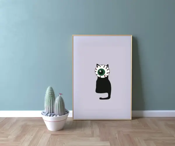 Halloween Funny Cute Cat Art Printable Spooky Bloody Eyeball Black Cat Wall Art Funny Halloween Wall Decorations Jpg Png Print